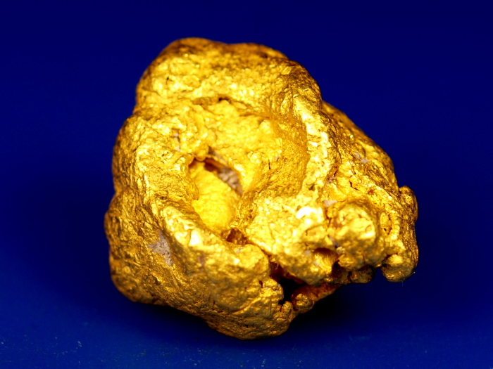 This gorgeous chunky nugget comes from the goldfields of central Arizona. This one is nearly 1/2 troy ounce, weighing in at 15.20 grams. It has buttery bright gold and a really nice shape. You don't see very many nuggets available for sale from Arizona that are this size. Definitely a rare and collectable piece of AZ gold!