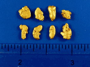 Here are eight beautiful gold nuggets from Fairbanks, AK with a combined weight of 3.80 grams.