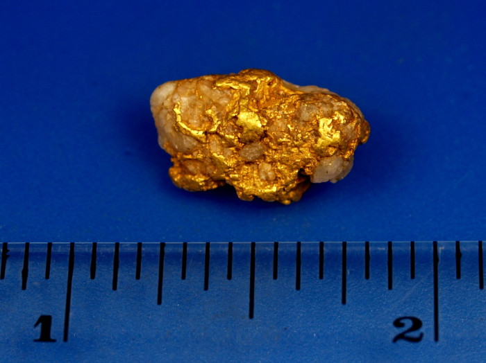 This nice specimen of gold in quartz comes from Arizona. It weighs 4.11 grams.