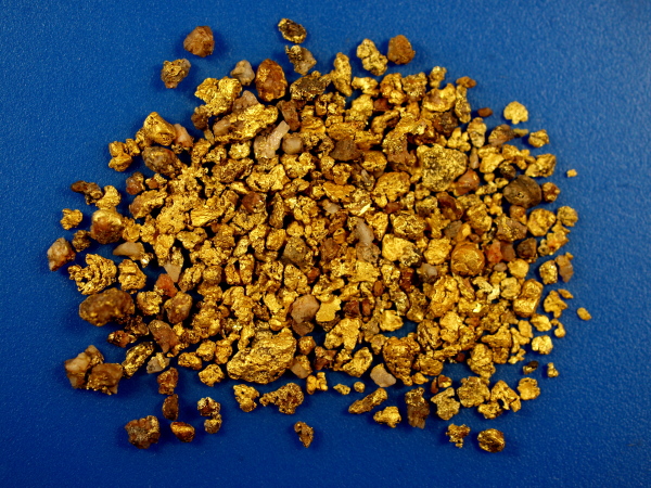 A nice parcel of placer gold that was recovered last summer from Elk Creek in Idaho City, Idaho. This was all found by a suction dredger just downstream from the vein so it is fairly rough textured. You will also notice that there are quartz bits with gold attached to them.