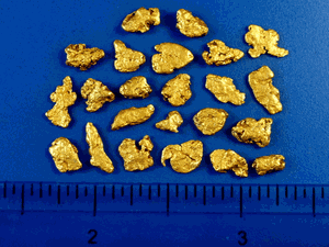A nice collection of small placer gold nuggets from Alaska. They have a combined weight of 7.80 grams, or just over 1/4 troy ounces. These were mined this summer up near Fairbanks, Alaska.